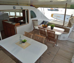Faraon is a 57 ft. Lagoon 570 built in 2004. It is a very large boat. Every area of the boat is so spacious, you'll forget you're on a boat!